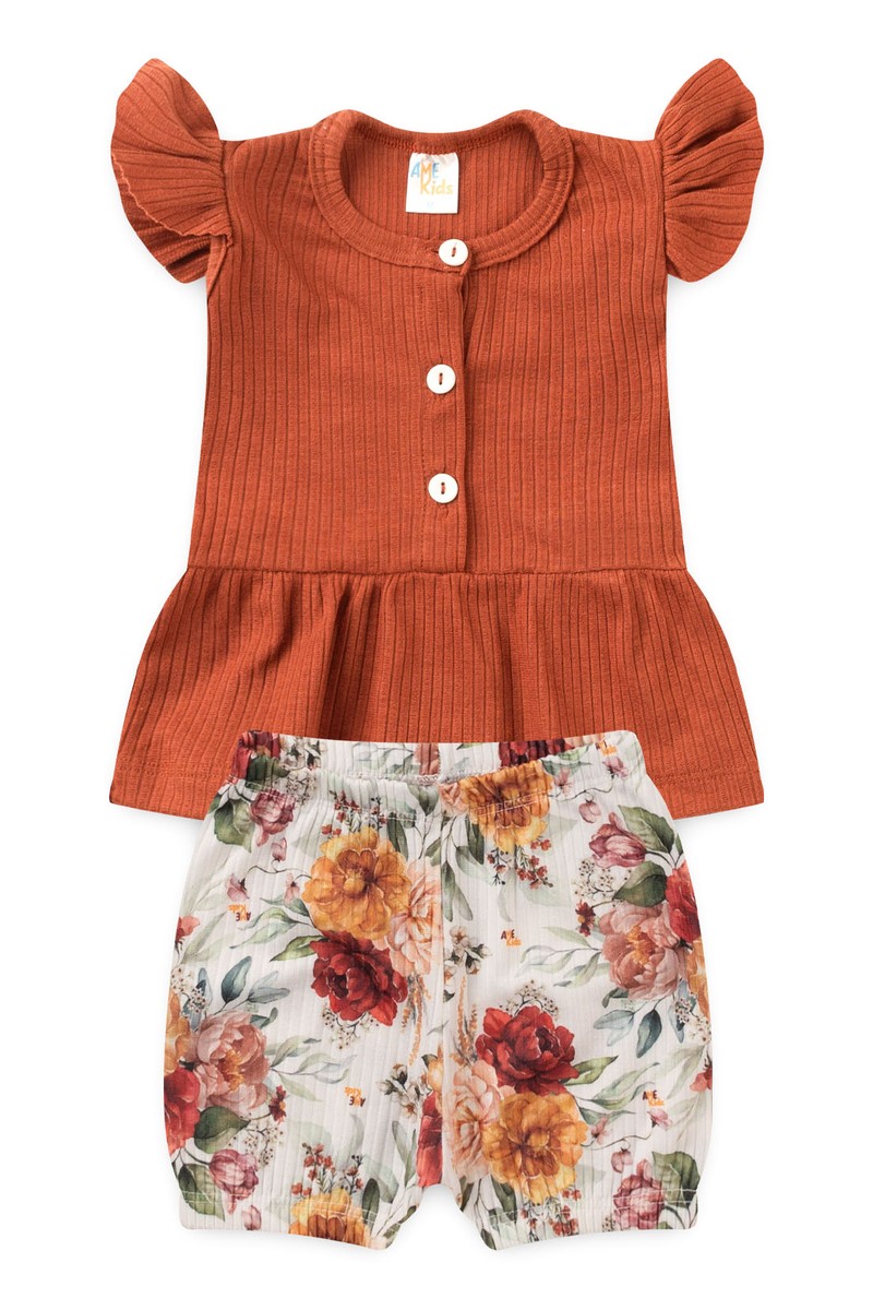 Conjunto Bata Shorts Verão Canelado Bebê - Terra - Ame Kids
