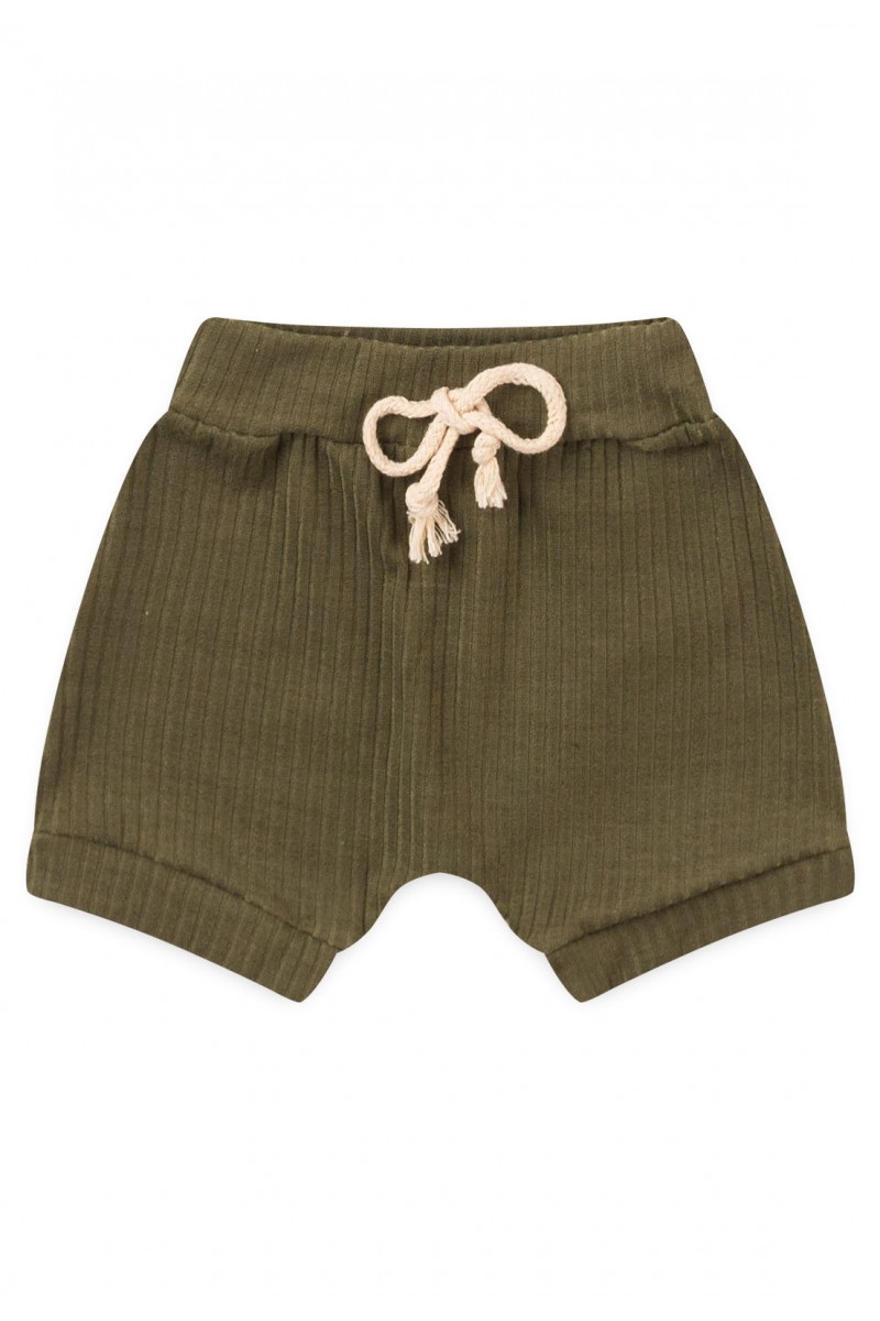 O short com modelagem saruel verde militar possui elástico na cintura para maior conforto do seu baby e também um cadarço decorativo que dá todo um charme para a peça.